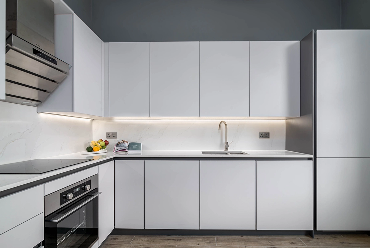 This kitchen was completely reimagined as part of a larger full renovation of a two-bedroom Grade II listed property. We relocated the kitchen to the opposite side of the room to take full advantage of the natural light from the large window. The result is a brighter, more welcoming space.